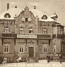 aber überdachten Terrassen, um die gesunde Waldluft zu genießen Im Jahr 1913 erwarb Herr Friedrich Wolf das Carolabad, erhielt eine Schankerlaubnis und
